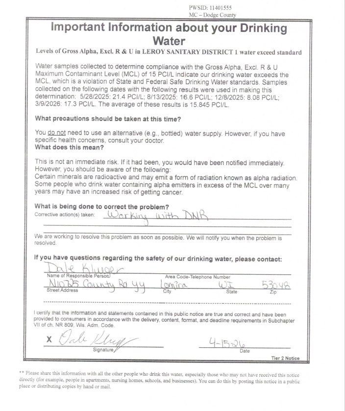 Posted on April 18, 2026, Edited April 18, 2026 by Sandra Porter Important Information about your Drinking Water