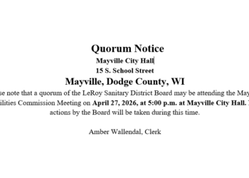 The April Meeting of the Leroy Town Board will take place Monday, April 13, 2026,…